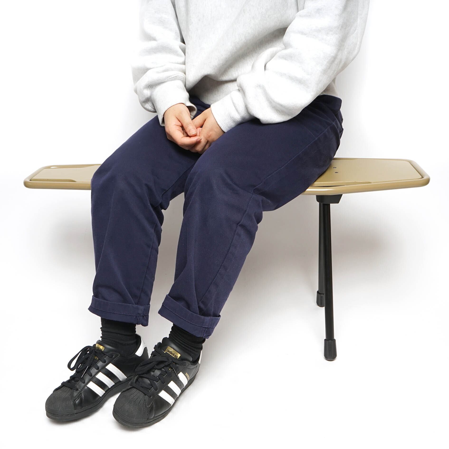 板厚は9mmあり、スケートボード(10mm)とほぼ同等の強度を確保しておりますのでテーブルとしてだけでなくスツールとしてもご利用いただけます。(耐荷重:静止荷重で約80kgを想定。※座られる場合は中央に一人のみで着席下さい。又、踏み台としてのご利用はおやめ下さい。)