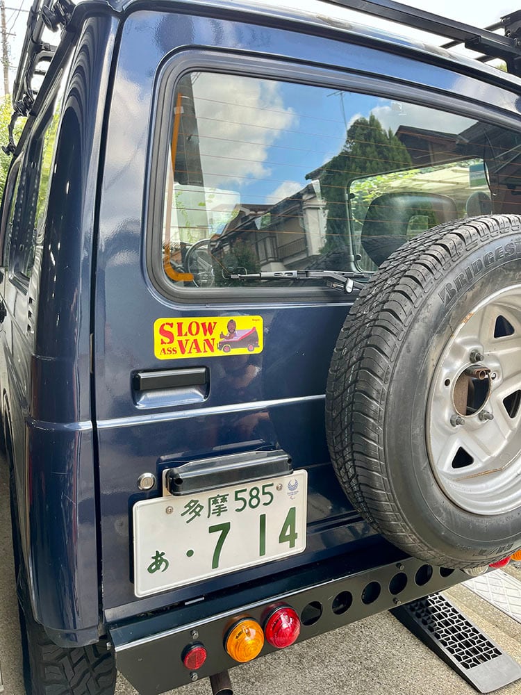 車の後ろに貼り付けて、